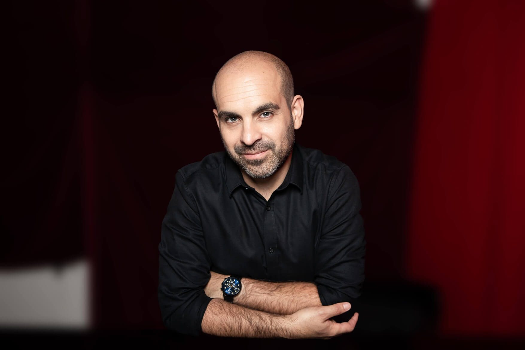 Sur scène, un piano. Seul. Arrive le daron. Un homme pressé, tout sourire, tout en noir ou presque…